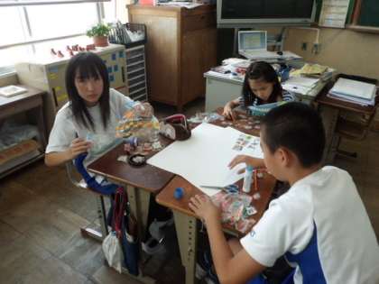 私たちの身のまわりの食料品についての産地調べをしていました。新聞広告にのっている野菜や肉・魚などが何県,あるいはどこの国から来ているのか・・・切り抜いて地域ごとにはっていきました。
