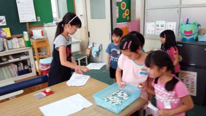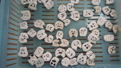 保健委員が1つ1つ手作りして,それぞれ顔の違う歯です。給食後の歯みがきをすすんでして,楽しみにしていた低学年の児童がたくさん来ました。