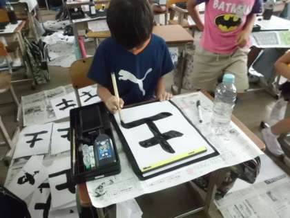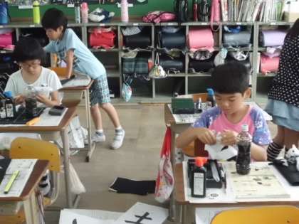「土」の清書をしました。みんな太くて大きい元気のある字を書いていました。始筆と終筆のおさえかたもバッチリです。後片付けも手際よくスムーズにできるようになってきました。