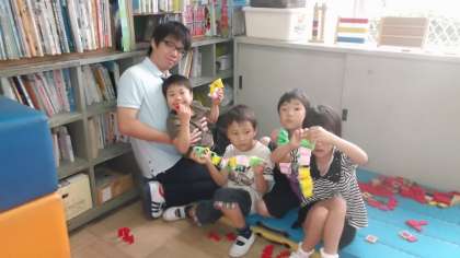 学生ボランティアの谷先生がなかよし学級にきてくださいました。図工の学習でおりがみをつかってかざりを作る学習では,谷先生に『できました〜。』『見てくださ〜い。』と話しかけながら,はさみを使って安全に活動できていました谷先生ありがとうございました。