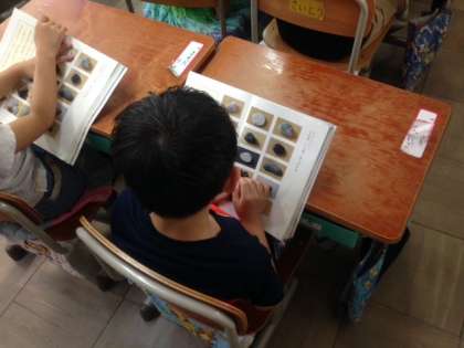 1年生の国語では「話す・聞く」の学習で「石」をもとにして勉強を進めています。「石」をよく見てみると,色や形など様々ですね。