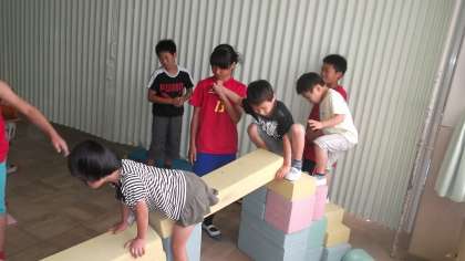 今日の中間休みは6年生のお兄さん・お姉さんがなかよし学級に遊びにきてくれました。ブロックで滑り台を作って滑らせてくれました。順番を守って,仲良く遊べました。お兄さん・お姉さん楽しかったです。ありがとう!