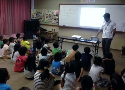 台風が近づき実施が心配された「ソーラーカー」。子どもたちの願いが通じたのか,予定通り本日行うことができました。日新電機株式会社の皆さんの指導の下,エネルギーについて学習したりソーラーカーに体験乗車したりして,環境についての学習を行いました。日新電機の担当者の方々,本当にありがとうございました。