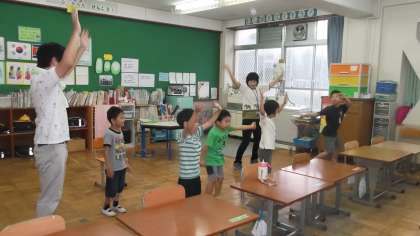 昨日に引き続き谷先生がなかよし学級に来てくださいました。朝の会では,木曜日恒例の『はなまる体操』を谷先生と一緒にしました。今日は朝から雨が降っていましたが,体操をしてすっきりした気分になりました。谷先生ありがとうございました。