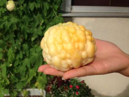 収穫時がよくわからないアップルゴーヤ。色が黄色く変わってきたので試しに収穫してみることにしました。中は普通のゴーヤと同様ですが形が円形で果物のようでした。食べてみると・・・やはり,苦い!!普通のゴーヤの十分の一の苦さと聞いていましたが・・調理してみると変わるかもしれません。今後もアップルゴーヤの成長から目が離せません。