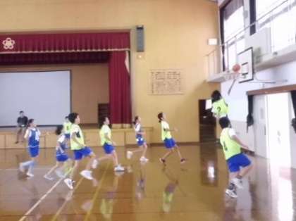 明日にせまったバスケットボールの全市交流会に向けて,練習に励んでいます。高さやスピードを生かした攻撃がとても素晴らしい・・・がんばれ川岡東!