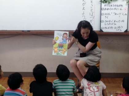 絵本を読んだり,実際の場面を想定して練習したりして,あいさつについて学習しました。