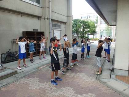 休み時間に応援練習の大きな声が響き渡ってきました。青組応援練習です。伝統的なコールの練習を中心にがんばっていましたが,応援団長を中心にとてもまとまりがありました。