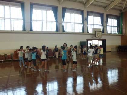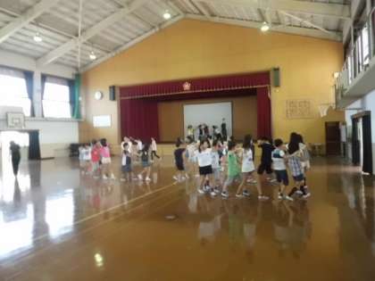 体育館でキャンプファイヤーの練習をしました。フォークダンス『クラホマミキサー』です。男女のペアが次々に交代しながら踊るのですが,楽しそうにしっかりと踊っていました。本番のキャンプファーイヤーが楽しみですね。