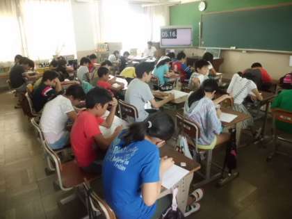 9月のさわやかな秋風をあびて,全校児童が一斉に計算問題にいどみました。回を重ねるごとに,子どもたちの目も輝きを増し,計算名人の領域へ一歩一歩,歩(あゆみ)を進めています。