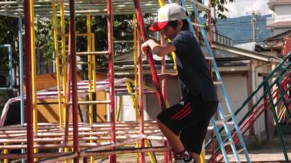 今日は朝から秋晴れのよいお天気でした。子どもたちは朝のお散歩に張り切ってでかけました。そして,運動場の遊具で思い切り楽しく遊びました。こんなお天気がずっと続くといいなあ・・・。