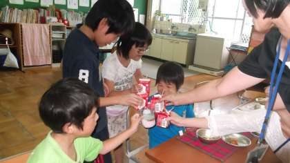この3連休にお誕生日を迎えるお友達の『少し早いお誕生会』をしました。給食時間に牛乳で乾杯をしてお誕生カードを渡してお祝いしました。お誕生日おめでとう!