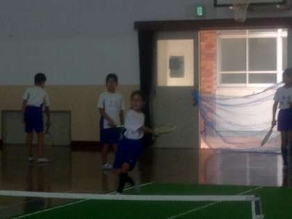 夏休みのブランクを感じさせず,みんな元気にラケットを振っています。指導者の皆様,ありがとうございます。