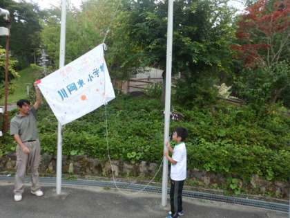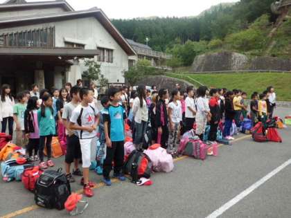 花背峠を越えて,山の家に到着しました。入所式では元気に校歌を歌い,これから3泊4日のがんばりを決意表明しました。