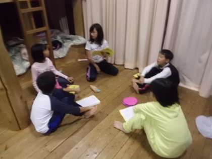 それぞれのグループで楽しく過ごしたあと,1日の振り返り活動をしました。今日のがんばったことや楽しかったことを交流し,明日の活動について確認しました。