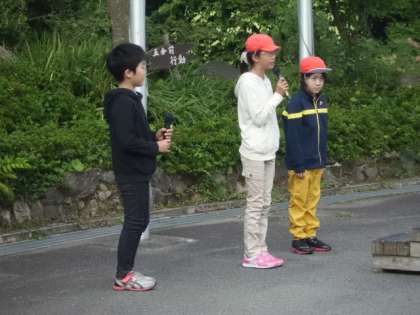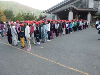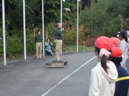 今日の朝のつどいは,同じ日程で活動している学校と合同で行いました。所員さんのお話を聞いた後,学校紹介がありました。川岡東小学校の代表児童3人は,「花いっぱい 笑顔いっぱい 夢いっぱい」を合言葉に頑張っている学校の様子や,地域の様子についてしっかりと発表できました。
