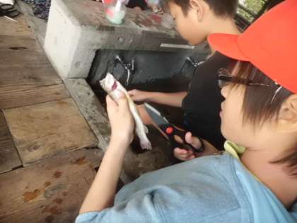 命をいただくという感謝の気持ちをこめて,魚をさばいていきました。