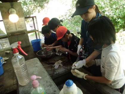 感謝の気持ちをもった子どもたちからは,魚のおなかにはさみを入れても,内臓を取り出しても「いやや〜」「気持ちわるい〜」なんていう類の言葉は一言も出てきませんでした。