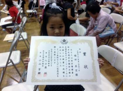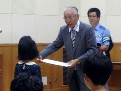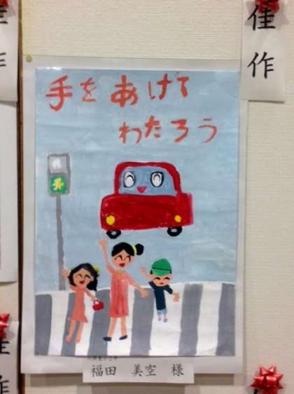 20日(土)西京警察署主催の交通安全ポスターコンクールで素晴らしい作品を描き入選した子どもたちの表彰式が行われました。本校からは2年生の福田美空さんの作品が佳作に選ばれました。福田さん,おめでとう!