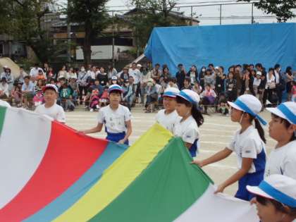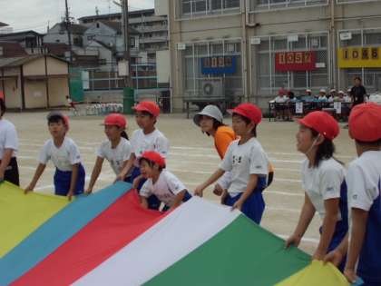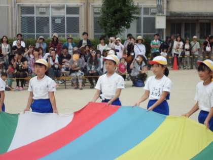 なかよし学級と3年生がなかよくバルーン演技をしました。