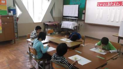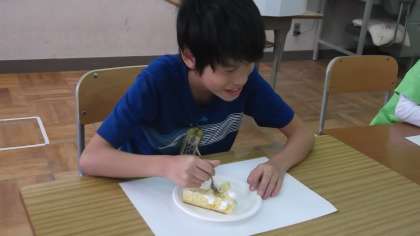 みんなで協力して作ったケーキが出来上がりました。『早く食べたいな〜。』と子どもたちは待ち切れな合い様子・・・。みんなで作ったケーキは格別でした。『おいしいね。』と言いながらいただきました。