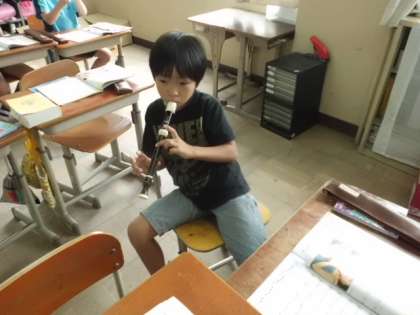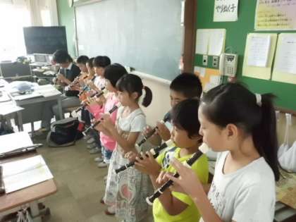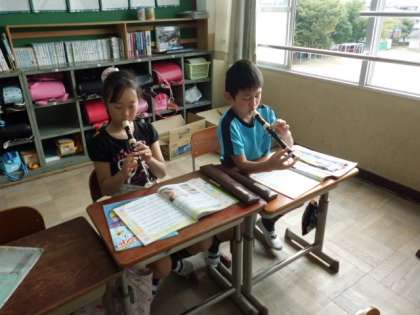 せんりつの感じを生かしてリコーダー演奏をしていました。パートに別れて演奏し,音の重なりも楽しんでいました。個別練習でも一生けんめい練習する姿が見られました。