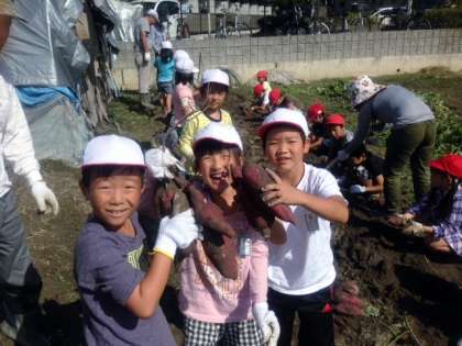 「見つけた」「こっちほって!」「大きいで」喜びの声が飛び交った畑。地域の方の協力で素晴らしく見事なおいもをほることができました。次は「おいもパーティー」です。お世話いただいた地域の皆様,本当にありがとうございます。