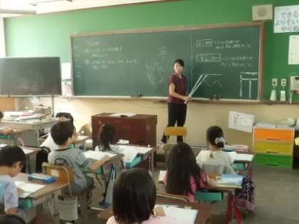 二等辺三角形の書き方を学習していました。二等辺三角形の特徴をとらえて,コンパス・定規で書いていました。まだ,コンパスも使い慣れていないので,かなり苦労していましたが,みんながんばって正確な二等辺三角形を書き上げていました。