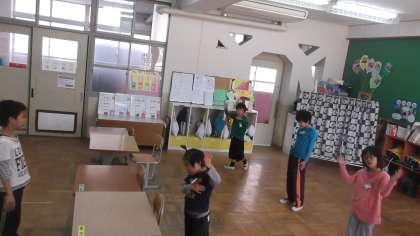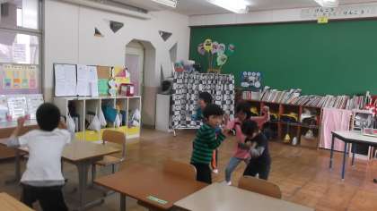 29日水曜日に西京東支部の育成運動会が嵐山東小学校であります。準備運動で『あとひとつ』という曲で体操をします。今日はその練習をしました。1年生児童にとっては,初めての育成運動会です。高学年児童から『次はこうするよ。』と,いろいろ教えてもらいながら頑張りました。