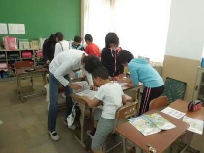 今日も,楽しそうな活動をして盛り上がっていました。アレックス先生が「library」と言えば・・・いち早く図書室の絵に○をします。早いもん勝ちです。みんな必死で戦っていました。熱気ムンムンでした。