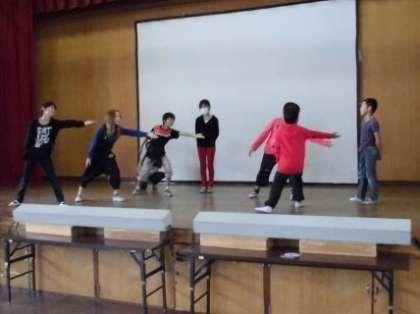 パート別に分かれて,かなり細かな部分まで演技して,みんなと合わせていました。パートが合わさって全体練習・通し練習になっていくのがすごく楽しみですね。