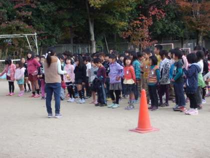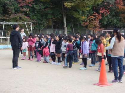 体育館の割り当てがないときは,運動場でも練習します。