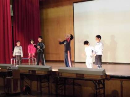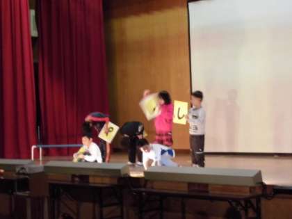 とっても大きな声でリードしてくれる高学年のお兄さんとかわいい低学年の子どもたち。なかよし学級のいつもの様子がよくわかるほほえましい出し物でした。