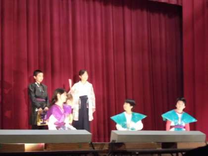 わがままな殿様の命令で武士たちが,はるか外国まである物を買いに行くというお話です。はたしてその結果は・・・?演技はもちろんの劇中のパフォーマンスでも観衆を魅了しました。