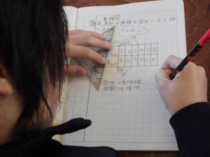 いろいろな形の面積の求め方を学習してきましたが,底辺や高さが変化した時の法則について学習していました。順に調べていくと・・・そう,みんなある法則に気づく事ができました。
