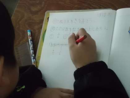 今日は数直線上に示された場所を分数で表す学習をしました。