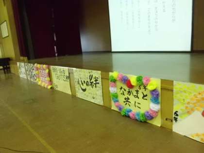 その後,各学年から人権メッセージを盛り込んだ歌や言葉を発表し,最後には,全校児童で『たいせつなともだち』を大合唱しました。
