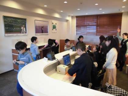 本日,生き方探究館において,スチューデントシティ学習を行いました。これまでの学習を生かして,働くことや給料の使い方について実際に体験し,学習を深めました。全体ミーティングの後,各ブースに分かれて活動が始まりました。