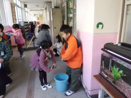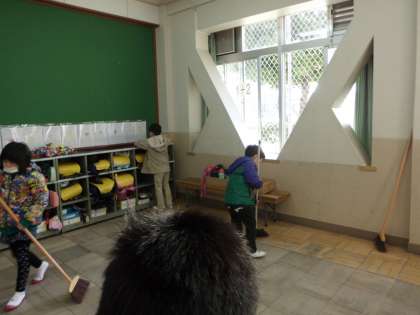 冬休み中に、教室や下駄箱に溜まったゴミをきれいに掃除しました。
