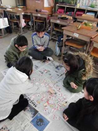 国旗のかるたをする班,いろはかるたをする班と様々でしたが,どの班も和やかにカルタ遊びに親しんでいました。