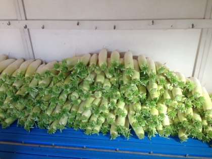 11日(日)に行われる少年補導主催の新春ジョギング大会に向けて,少年補導委員会やPTAの役員の皆様が多数で準備されています。寒い中をありがとうございます。写真に見えるたくさんの立派な大根は校区の畑で育てられたもので,ジョギング大会の景品となるそうです。明日が楽しみです!