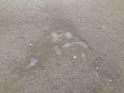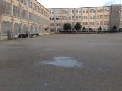 気温が氷点下となる凍てつく朝を迎えました。水たまりの水が凍っています。