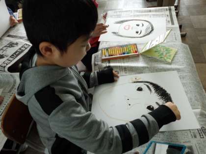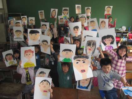 図工の時間に自分たちの顔をかきました。手鏡でじっくりと自分の顔を見てかいていきました。鏡に映る自分の姿に見とれている子もちらほらいましたが,様々な表情のすてきな自画像ができあがりました。
