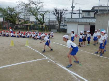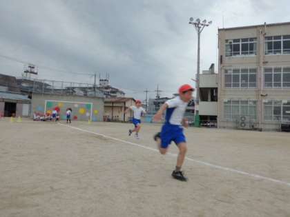 はやく走りたくてウズウズしていた3年生は,やる気まんまんにスタートラインに並びました。しかし,スタートラインに並んだ子ども達の視線の先は,ゴールを見ているわけではありませんでした。その視線は遥か遠く,オリンピックを見すえていたのでした。