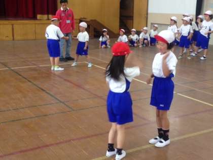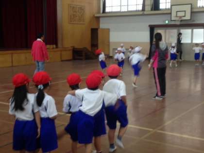 雨の多い今年の4月。体育館で1年生の体育を行いました。楽しいじゃんけんゲームで子どもたちは大喜び。学校生活にもずいんぶん慣れてきました。