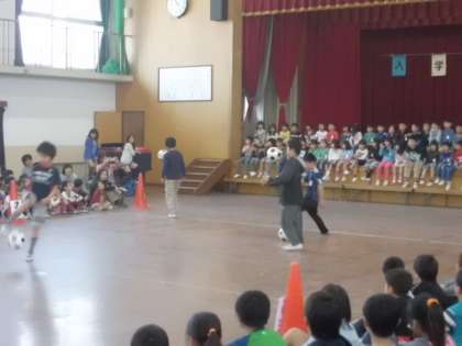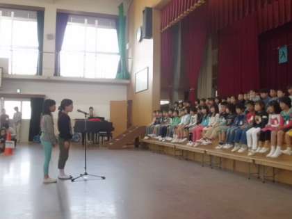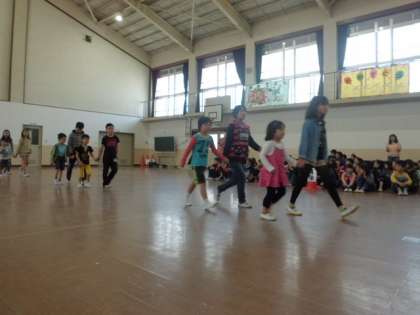 2年生から6年生のお兄さん,お姉さんのみなさんに「1年生を迎える会」をしてもらいました。6年生からは歌や出し物をしてもらい,とても楽しく過ごすことができました。「お兄さん,お姉さんありがとう。」