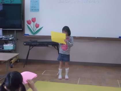今日はみんなの前で得意なことやうれしかったこと, これからがんばりたいことを発表しました。聞いているみんなも「へぇ〜。」や「すご〜い。」という声があがっていました。たくさんの拍手!いっぱいほめてもらえてよかったですね。