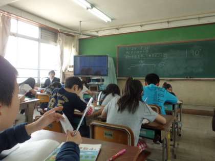 4年生になって初めての参観日。難しい問題にもがんばって学習に集中していました。1組は分度器を使って,180度より大きな角度をはかる学習。2,3組はわり算の学習。練習問題までばっちりできていましたよ。