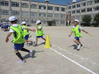 バトンパスの練習から子ども達の声が出ていました。