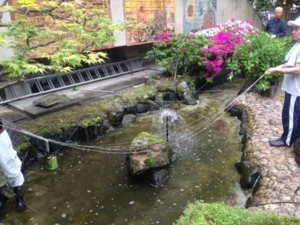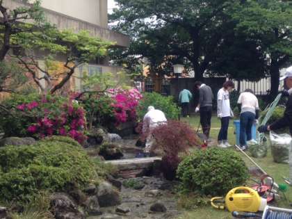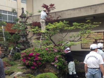 本校日本庭園の植木の剪定,池掃除が3日に行われました。朝から地域の方に多数ご来校いただき作業していただいた結果,見違えるほど美しくなりました。池の魚たちも早速きれいな水の中を気持ちよく泳ぎ始めていました。ご参加いただいた地域各種団体の皆様,本当にありがとうございました。